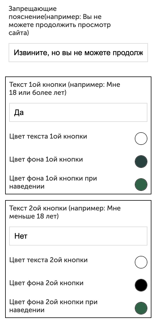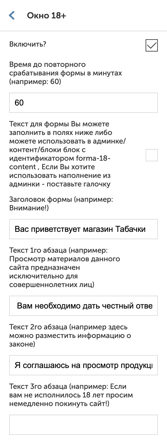 Вы можете заказать установку формы, которая запрашивает подтверждение достижения клиентом определенного возраста перед входом на сайт.