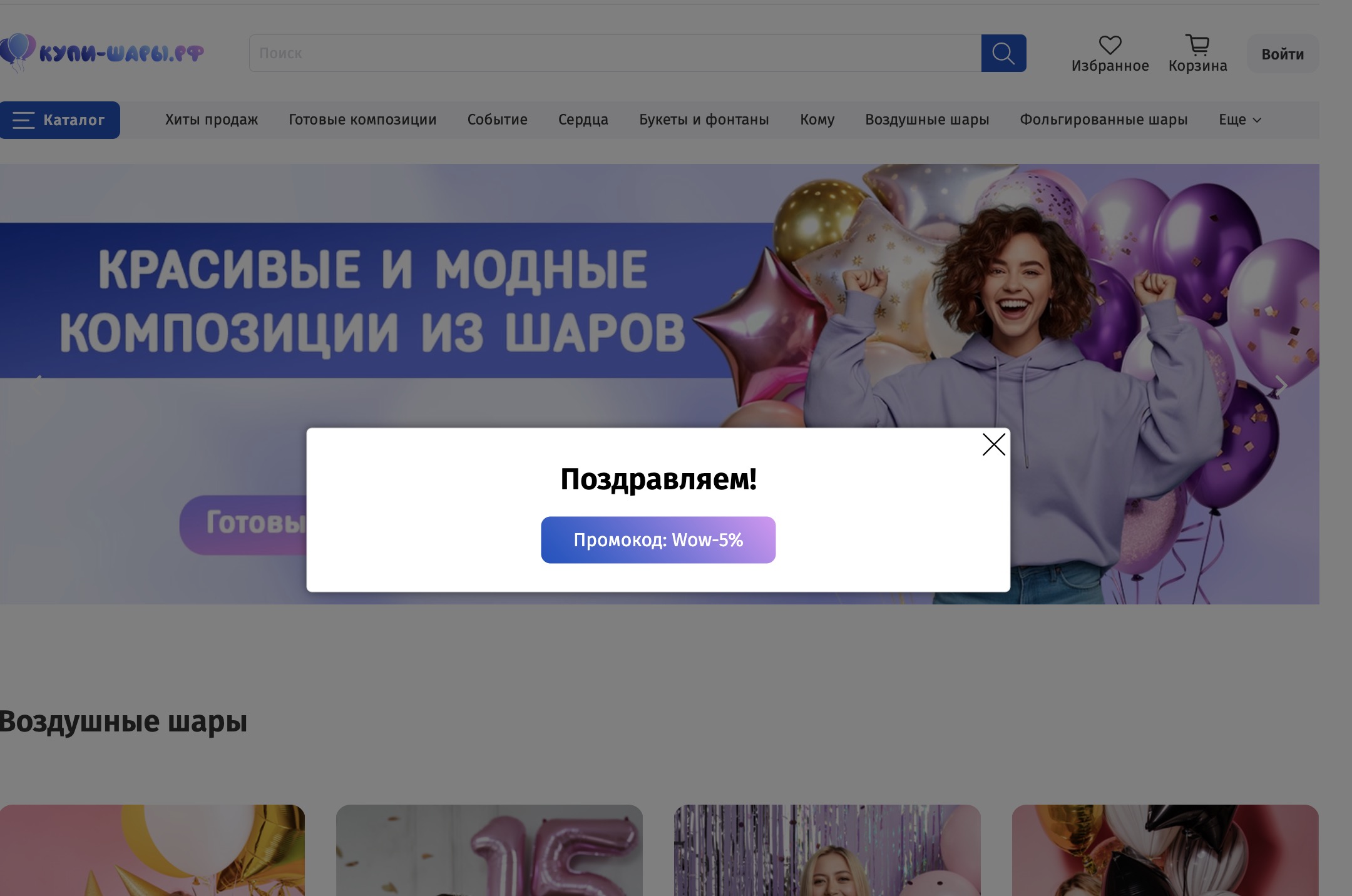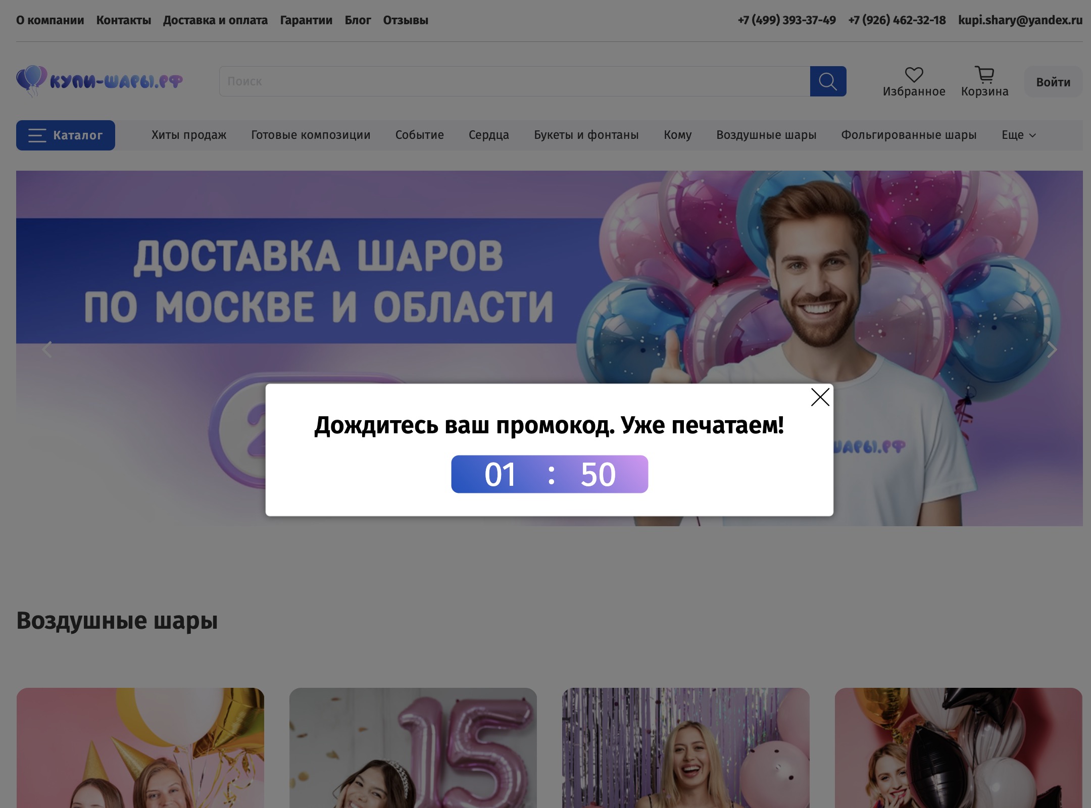 Помокод в popup окошке с таймером! Повышает лояльность клиентов, улучшает поведенческие факторы (время посещения сайта) и конверсию!